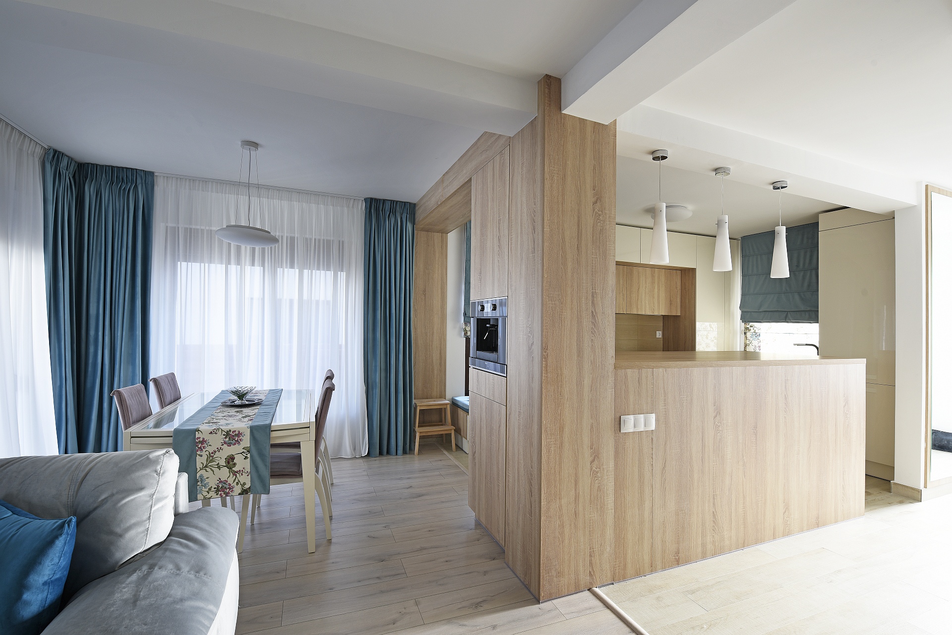 Bucataria este separata de hol printr-un bar – ce are dubla functiune – uneori ca masa de lucru alteori ca bar si loc de adunare cu prietenii.