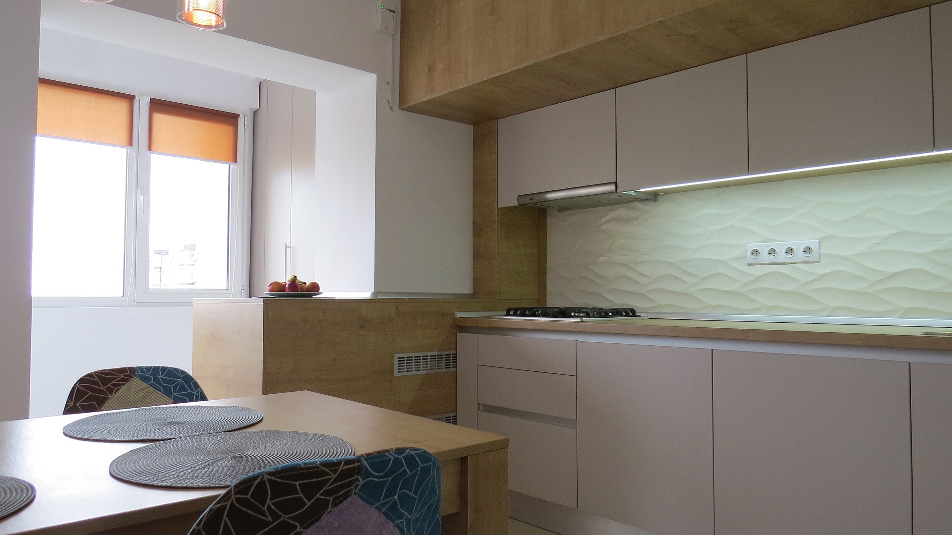 Mobila bucatarie Andrada este despre cum designul iti poate schimba radical casa . S-a plecat de la mascarea grinzii superioare de 80 cm inaltime si s-a ajus la o bucatarie de vis !
